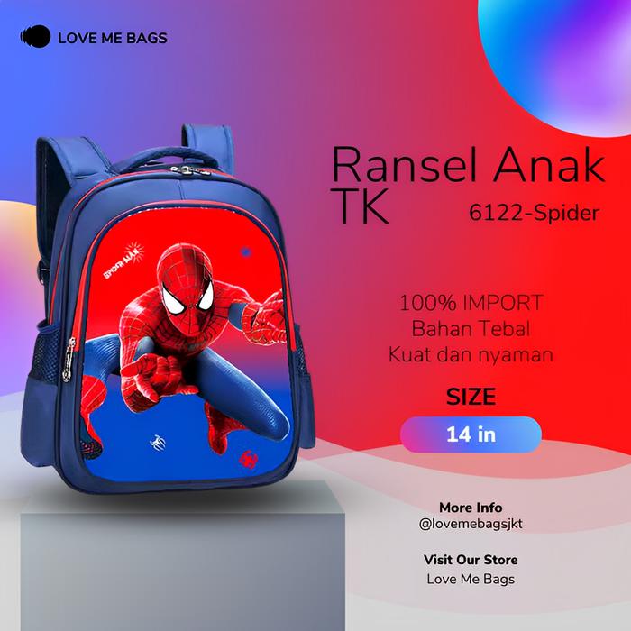 LMB Tas Anak Sekolah Laki Laki TK Import Bahan Nilon Premium Karakter Superhero Bagian Depan Gambar