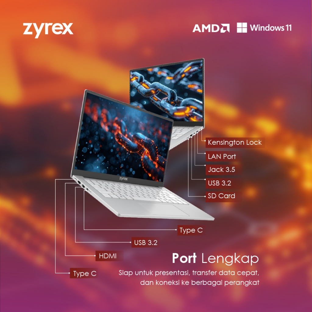 Laptop Zyrex D-TECH PRO V2 RYZEN 5 6600H 16GB 512GB Windows 11 Home 14" FHD Garansi Resmi Indonesia