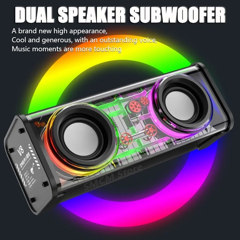E-Home Dual-Horn Speaker Bluetooth Soundbar RGB LED Light 360° Stereo Surround Wireless Subwoofer Audio Sports Outdoor