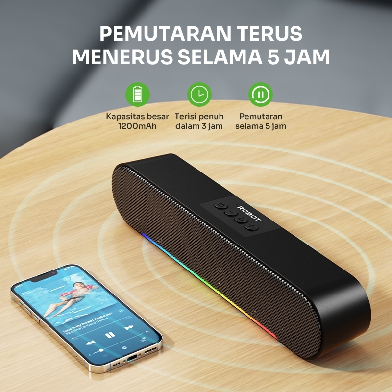 ROBOT RB290 Speaker Bluetooth 5.3 Speaker Stereo Soundbar 10W with RBG Lights - Garansi Resmi