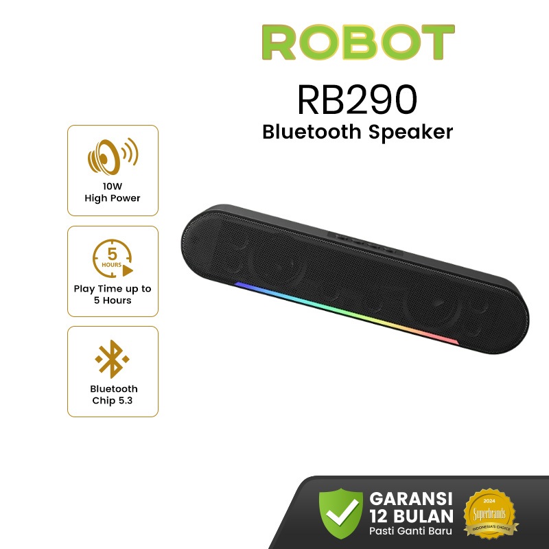 ROBOT Speaker Bluetooth 5.3 Wireless Portable 10W Soundbar Komputer RGB Lampu Dua Speaker 10W RB290 - Garansi 1 Tahun