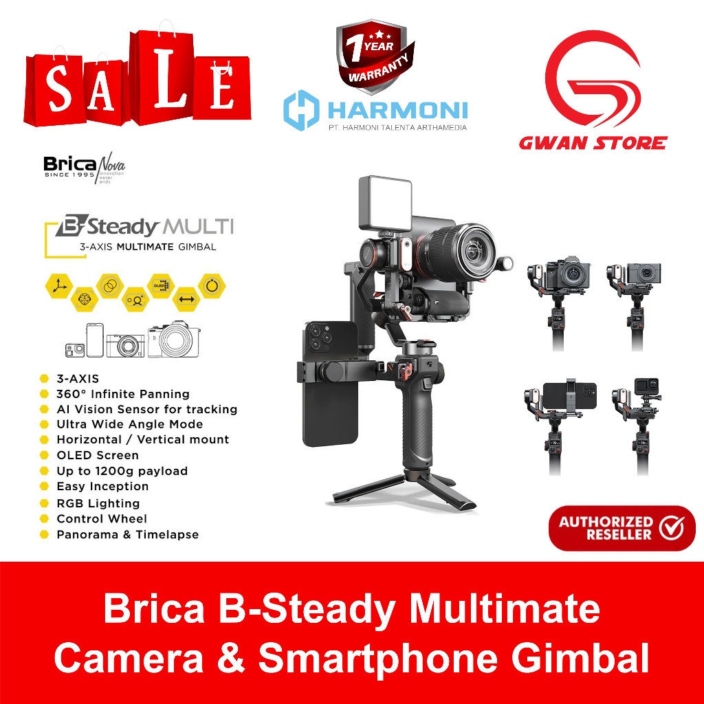 Brica BSMU B-Steady BSteady PRO Multi Multimate 3-Axis Compact Action Camera Smartphone Gimbal Stabilizer HP