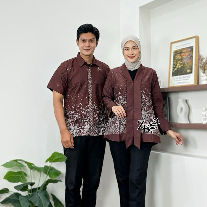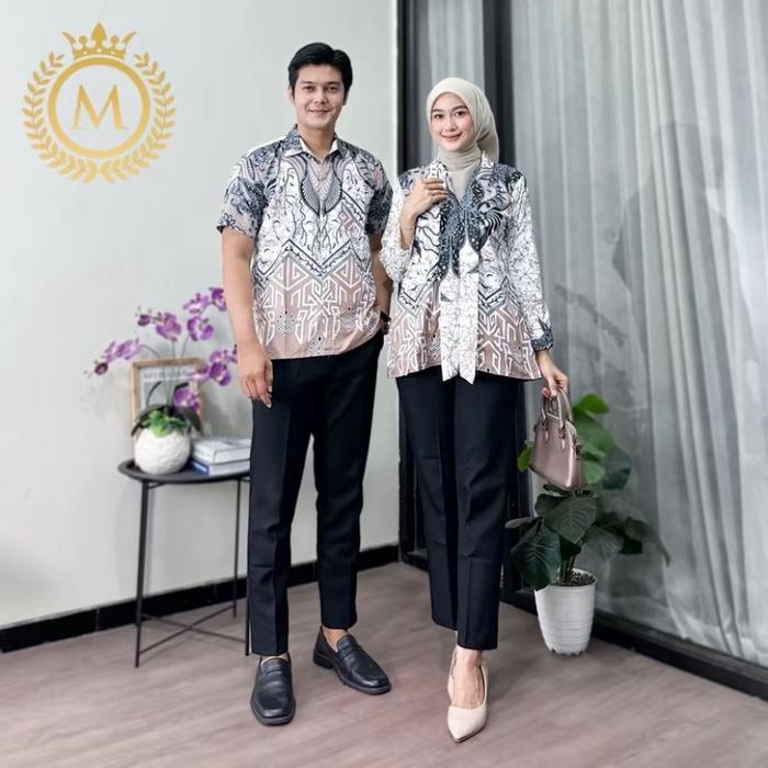 ATASAN BATIK COUPLE MODERN KEMEJA BATIK PRIA LENGAN PENDEK BLOUSE BATIK KUTU BARU SERAGAM BATIK KATUN - BLUS G KECIL, M