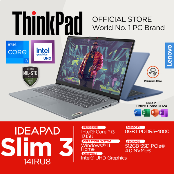 Lenovo Ideapad Slim 3i Intel Core i3 1315u 8GB 512SSD Windows 11 Office 14 Inch FHD 5NID