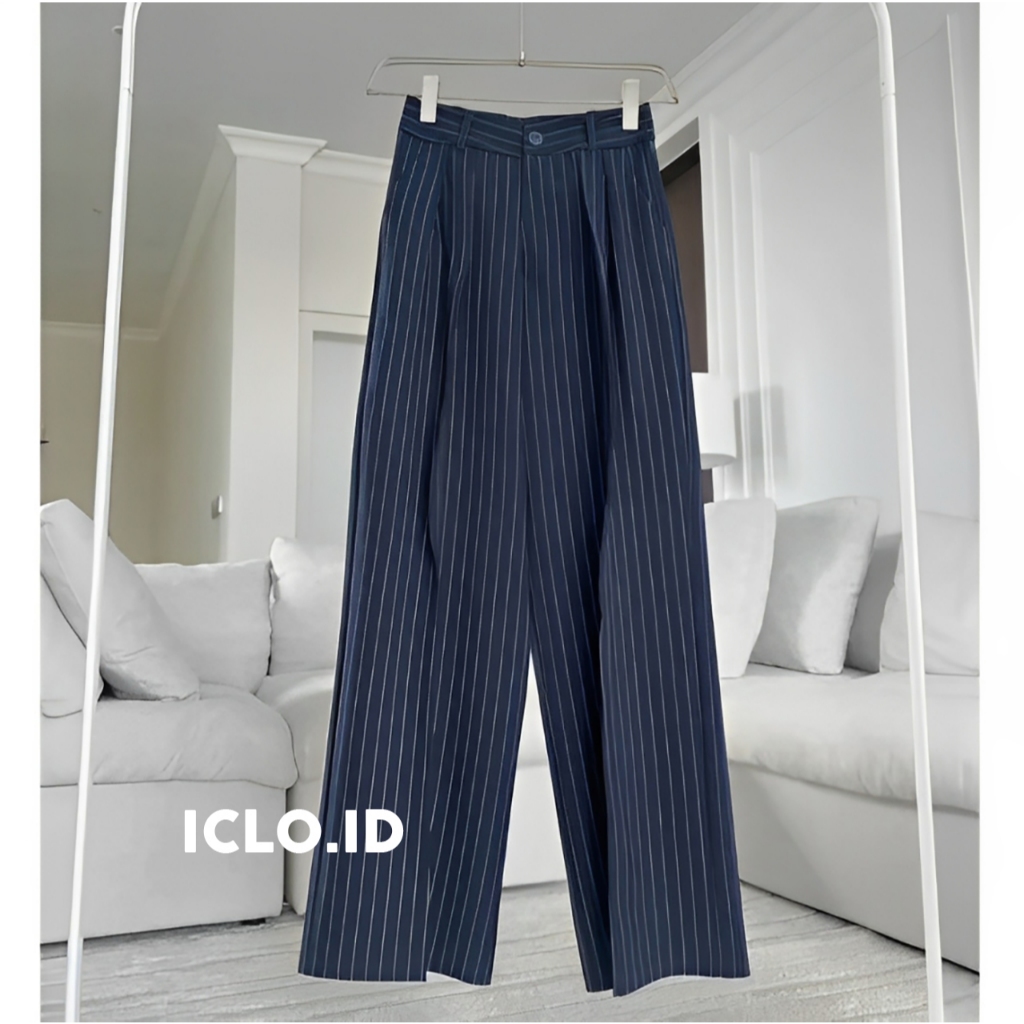 STRIPE PANTS - Loose Pants Stripe Celana Kulot Wanita JUMBO Anti Kusut Highwaist Premium - Celana Stripe Wanita Garis Salur