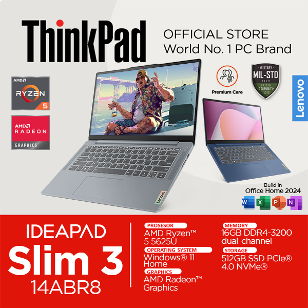 Lenovo Ideapad Slim 3 Ryzen 5 5625u 16GB 512SSD Windows 11 Office 14 inch FHD IPS 14ABR8 90ID 8YID