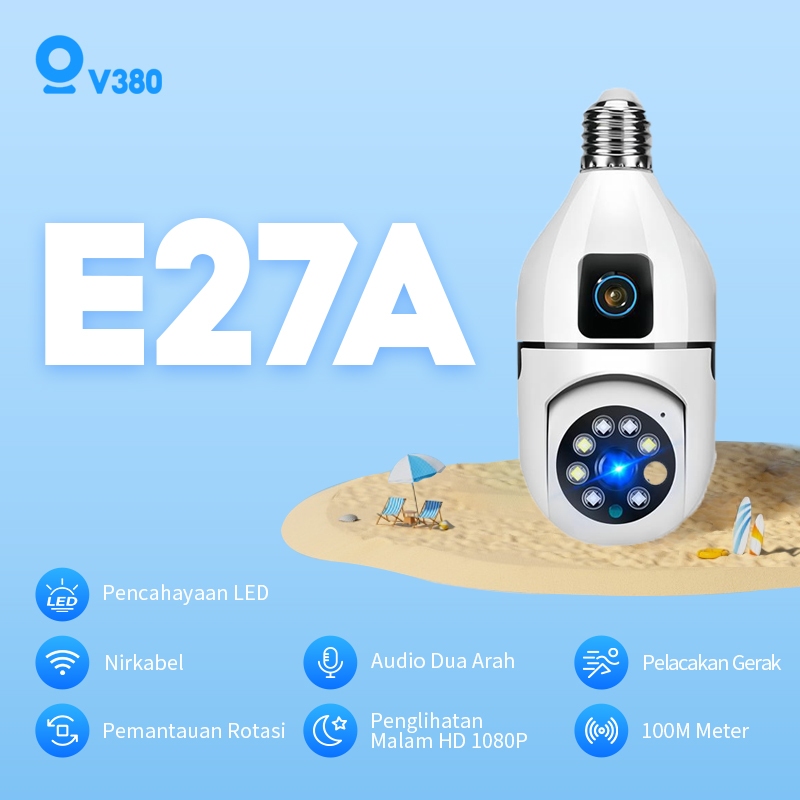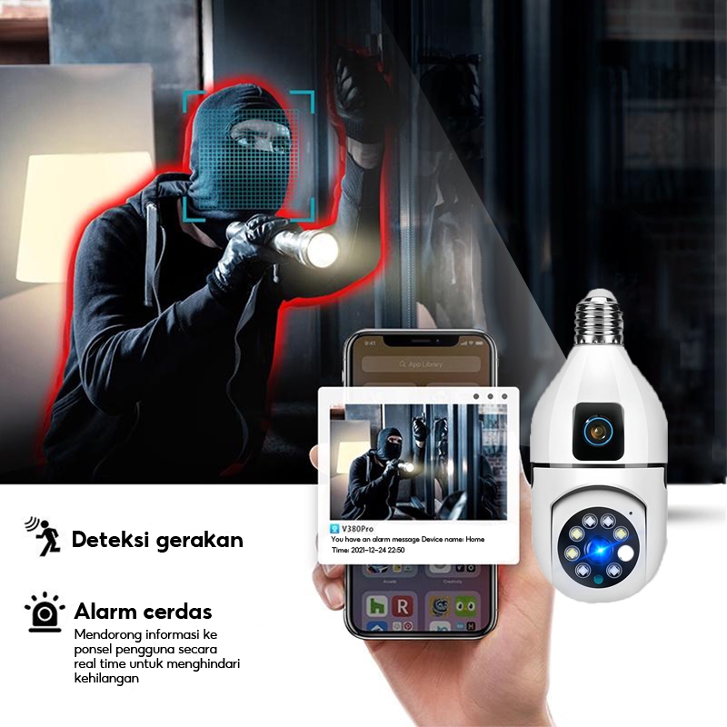 V380 E27A CCTV Indoor Dual Camera HD2.4G/5G Wi-Fi BULB PTZ Lensa Ganda Kamera keamanan Audio Dua Arah