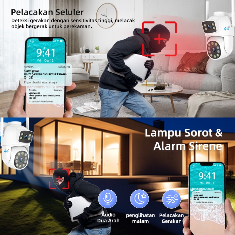 Franwell 4G CCTV Outdoor Dual Lens | 1080P Night Vision | Audio Dua Arah | Gratis SIM | Tahan Hujan