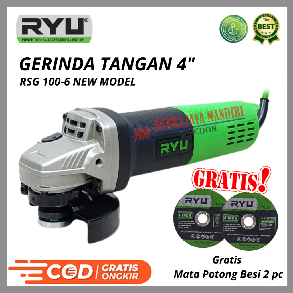 Ryu Gerinda Tangan 4 Inch Free 2 Pc Batu Potong Besi Gurinda Grinda Gergaji Besi Kayu RSG 100-6