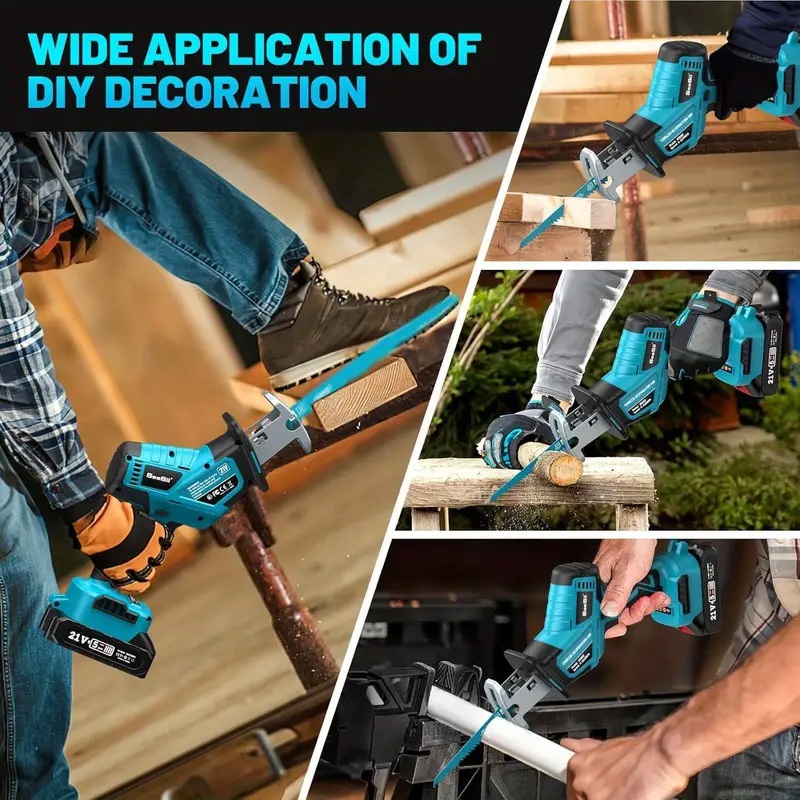 EFFORT Gergaji mesin mini multifungsi Reciprocating saw Gergaji Baterai Pemotong Listrik Kayu Logam gergaji listrik 4 Ma