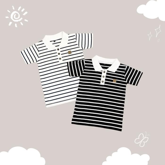KAOS ANAK POLOSHIRT STRIPE MONOCHROME SERIES POLCA MOTIF - POLOSHIRT MONO BLACK, S