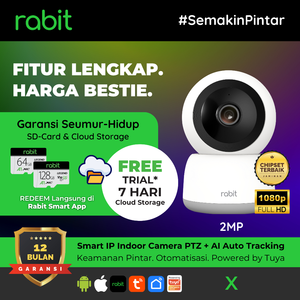RABIT SMART IP CCTV WIFI CAMERA INDOOR FULL HD 2 MP PTZ X