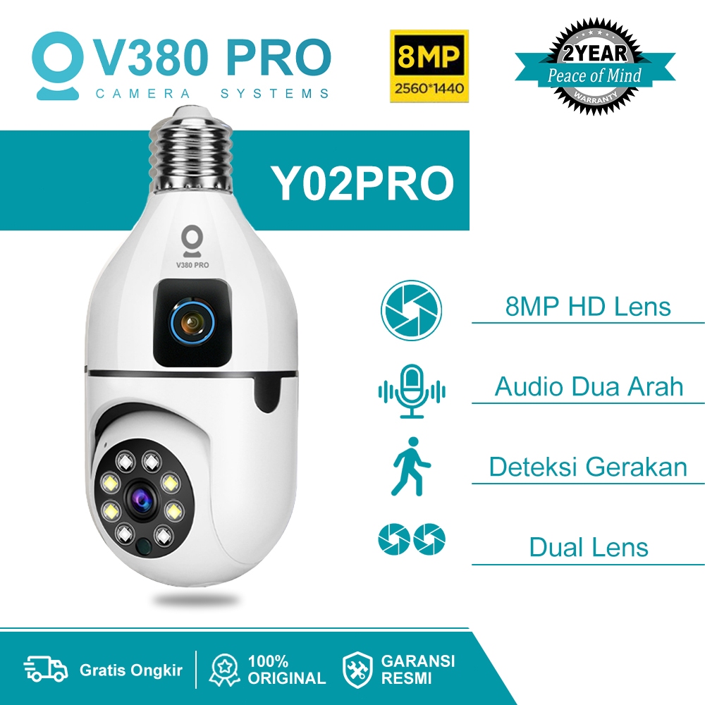 V380 PRO Y02pro 8MP Smart Bulb Camera 2-in-1 Dual Lens Indoor CCTV WIFI Deteksi Gerakan & Bebas False Alarm