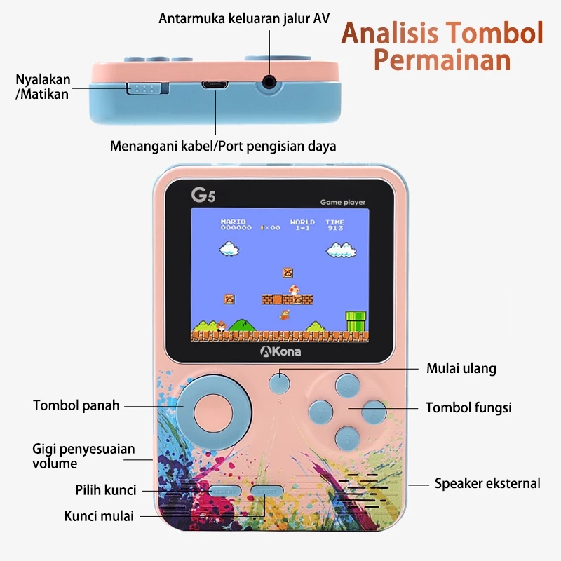 Game Boy 1000mAh Retro Handheld Game Console Connect to TV or Gamepad With 500 Classic Games 2 Pemain