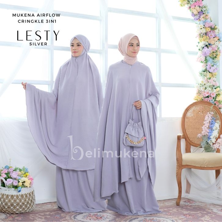 mukena terbaru BELIMUKENA PREMIUM - Mukena Dewasa 3In1 Airflow Cringkle Premium Lesty