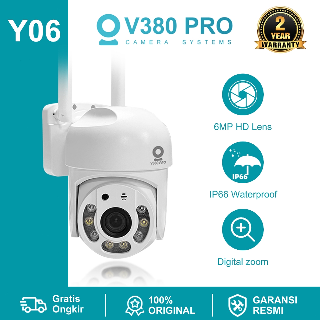 V380 Pro Y06 6MP CCTV Smart Wifi Outdoor Waterproof kamera 360° PTZ Pantau Jarak Jauh Auto Tracking / Tahan air IP66 / G