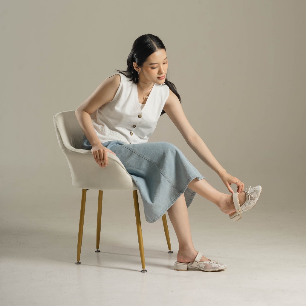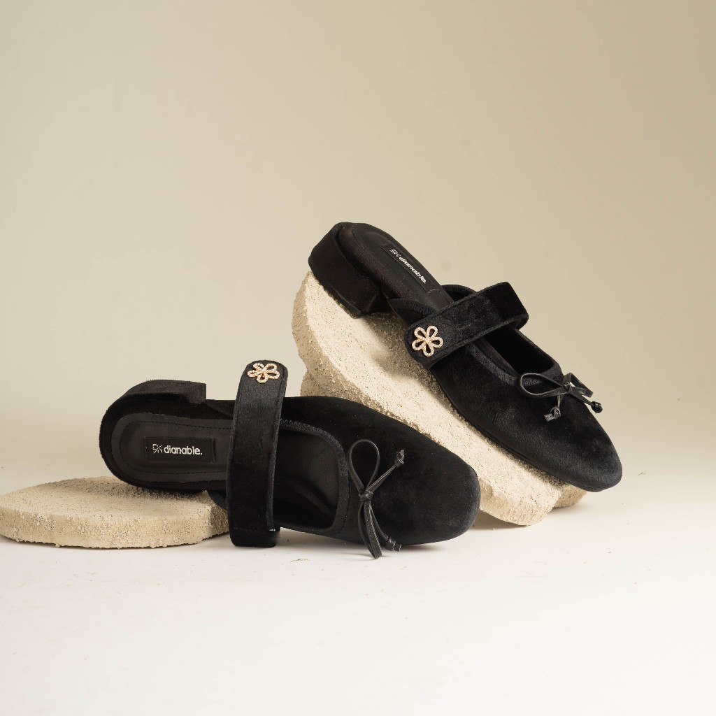 Dianable - Lyria Heels Mules Wanita (Black - Beige - Lace)