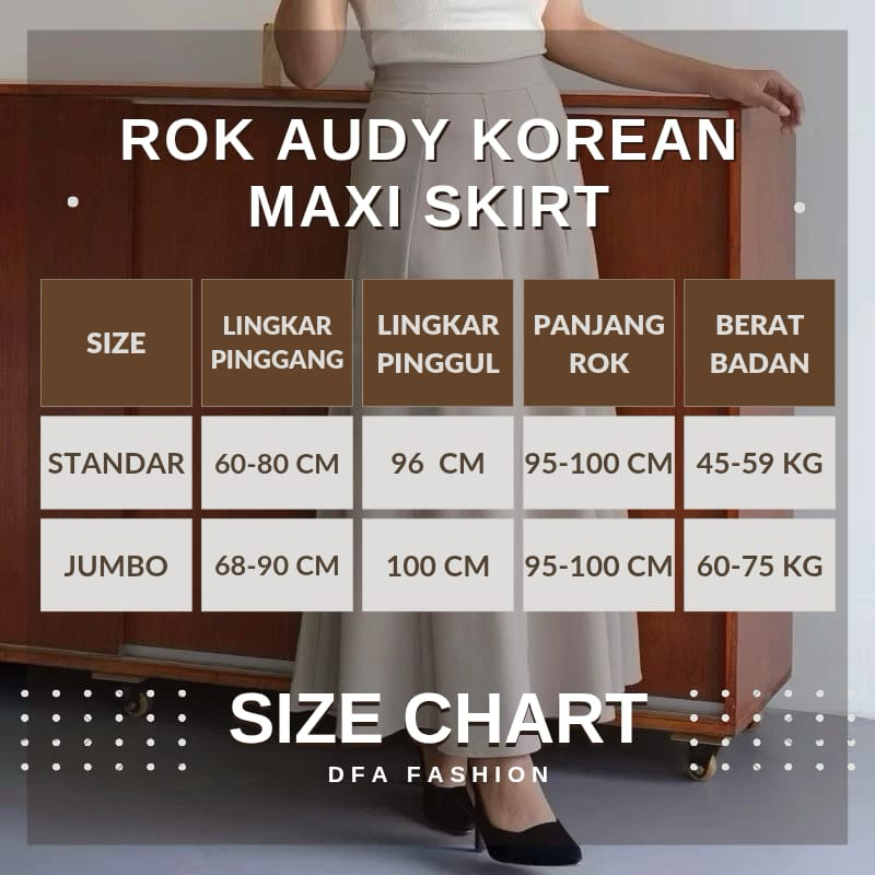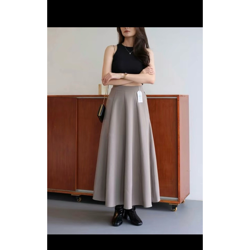 Audy Skirt - Korean Loose Maxi Skirt Rok Wanita Anti Kusut Polyester - Rok Flare Wanita - Rok Basik Polos - Maxi Skirt Rok Mayung Panjang Wanita