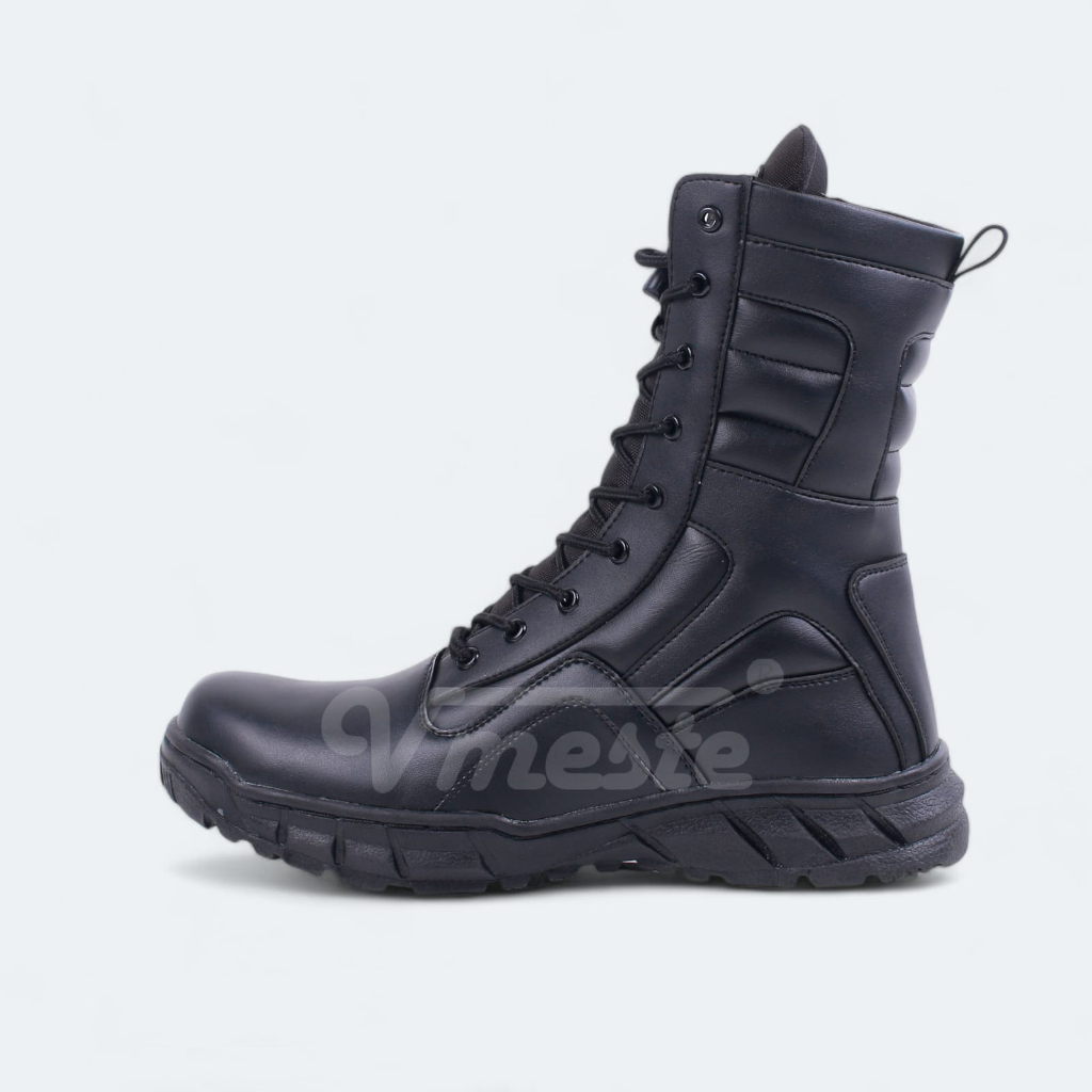 VMESTE - Sepatu PDL Blackhawk TNI Polri Brimob Security Satpam Kulit Sintetis Hitam Doff Ujung Besi