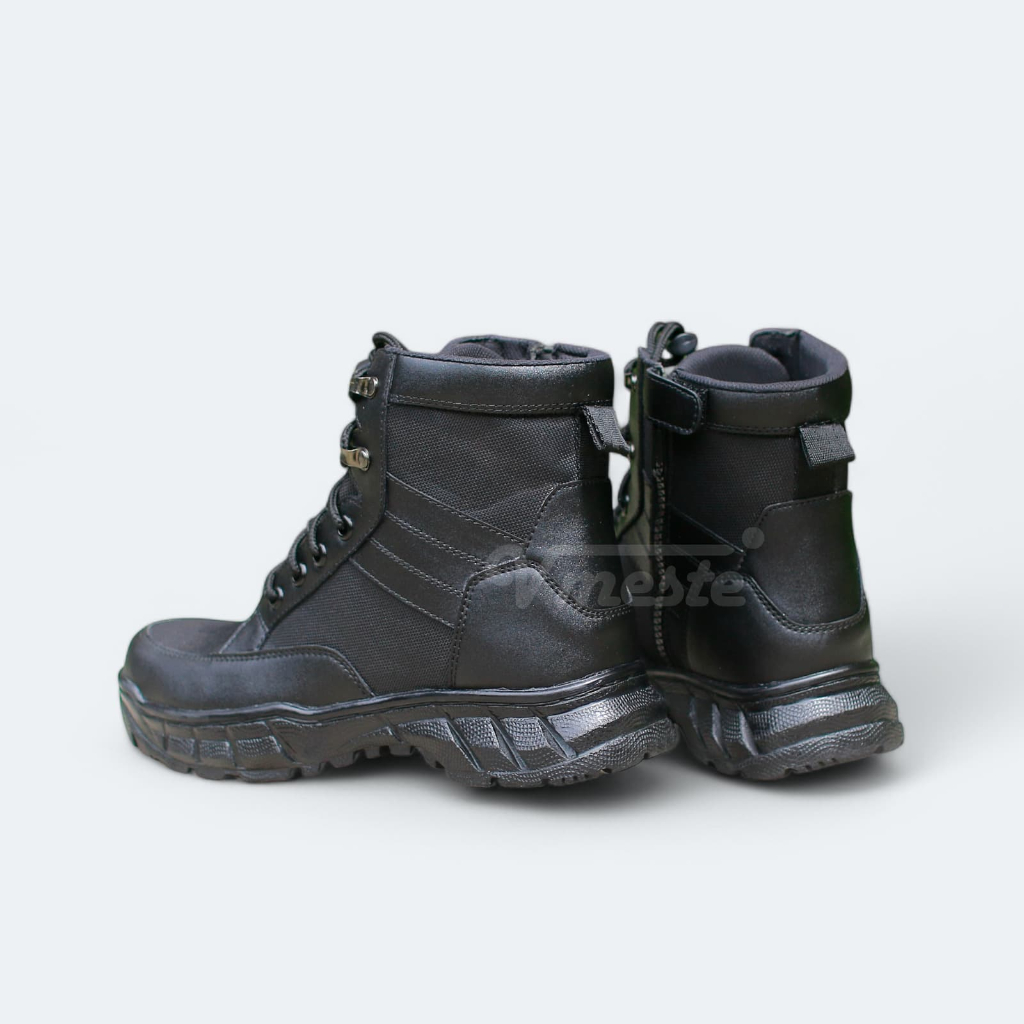 VMESTE - Sepatu PDL Weba Jatah Pendek TNI Polri Brimob Security Satpam Kulit Sintetis Hitam