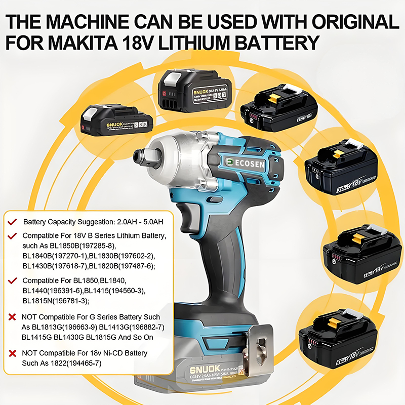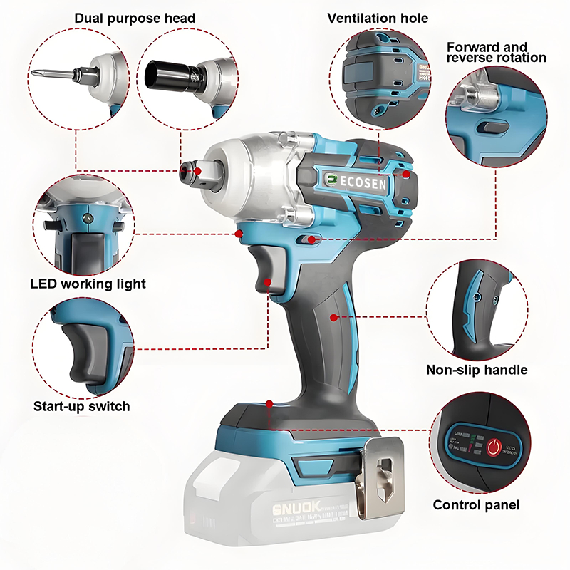 ECOSEN Cordless Impact Wrench Brushless impact baterai wrench Mobil Mesin Bor Untuk Baut EO010