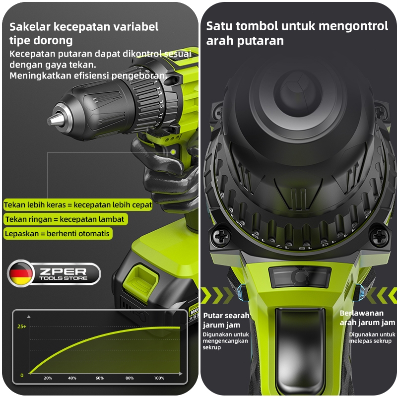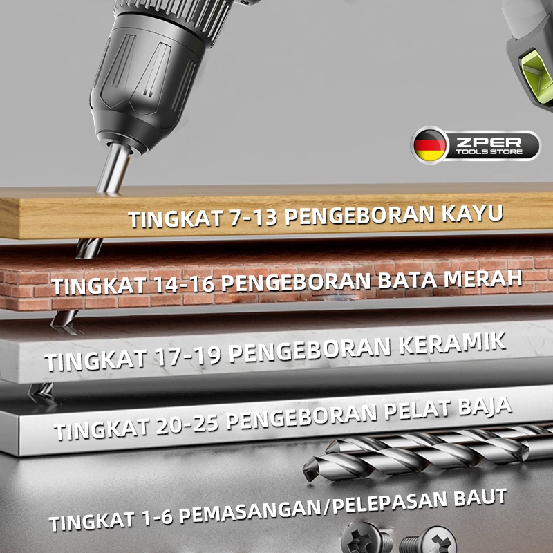 ZPER Bor Impact Multifungsi 21V Mesin Bor Baterai Cordless Listrik Tangan Elektrik