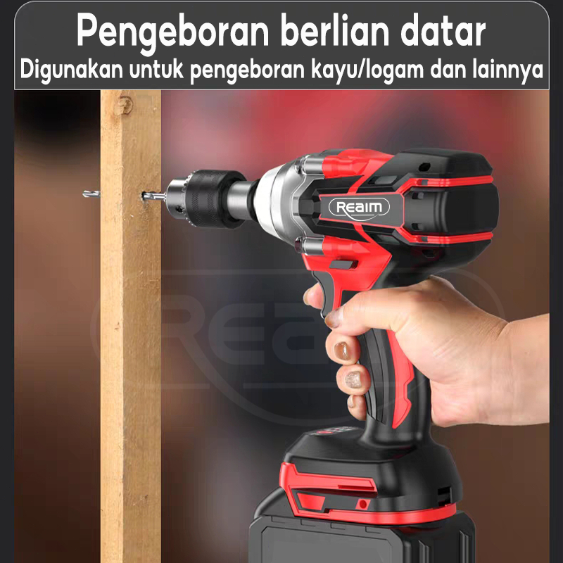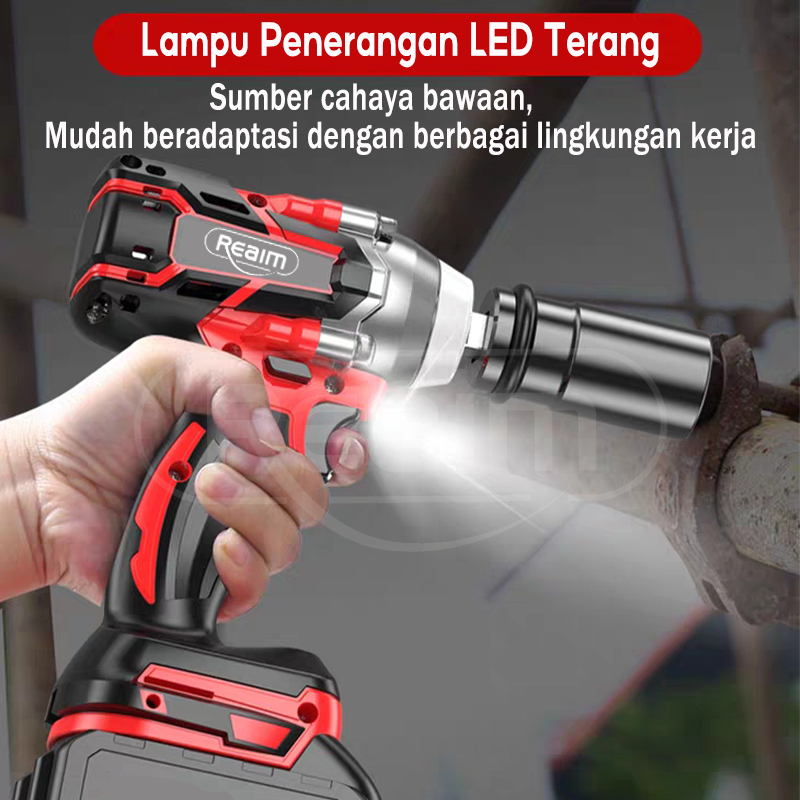 Reaim Impact Wrench Cordless 888V Brushless Bor Impact Baterai Mesin Impact Buka Baut Cordless Electric Wrench Rechargea