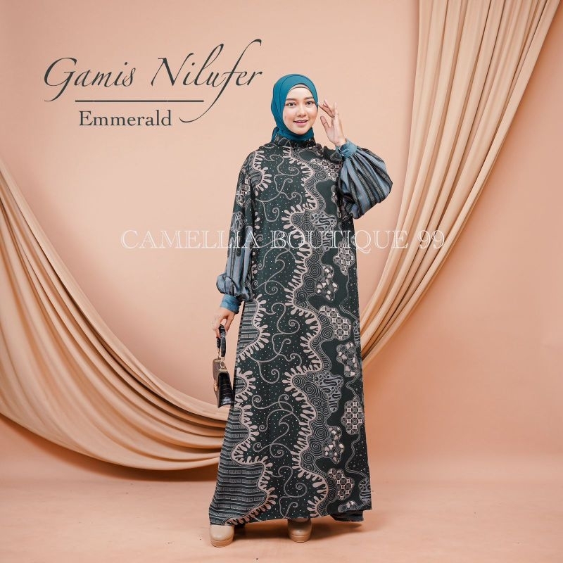 GAMIS NILUFER TERACOTA LENGAN BALON PREMIUM JUMBO BUSUI