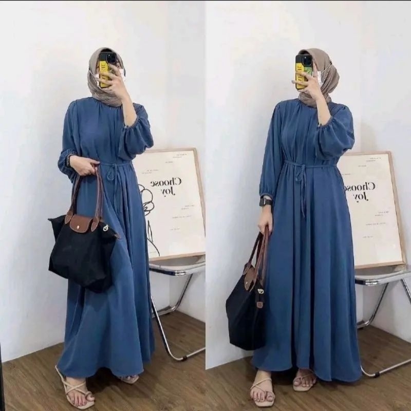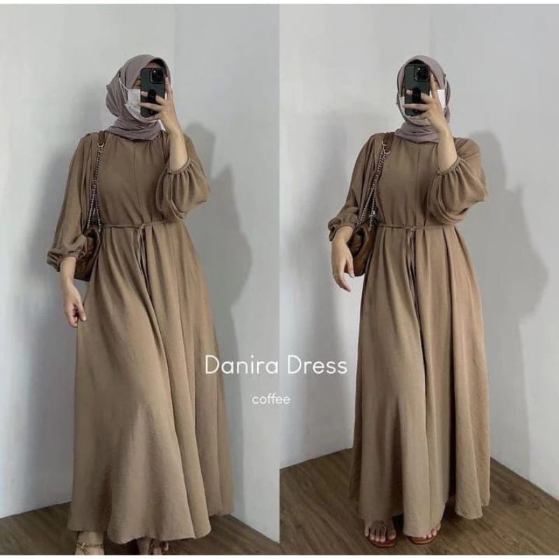 DANIRA MIDI DRESS CRINKEL PREMIUM GAMIS POLOS KRINKLE AIRFLOW PINGGANG TALI BUSUI FRENDLY