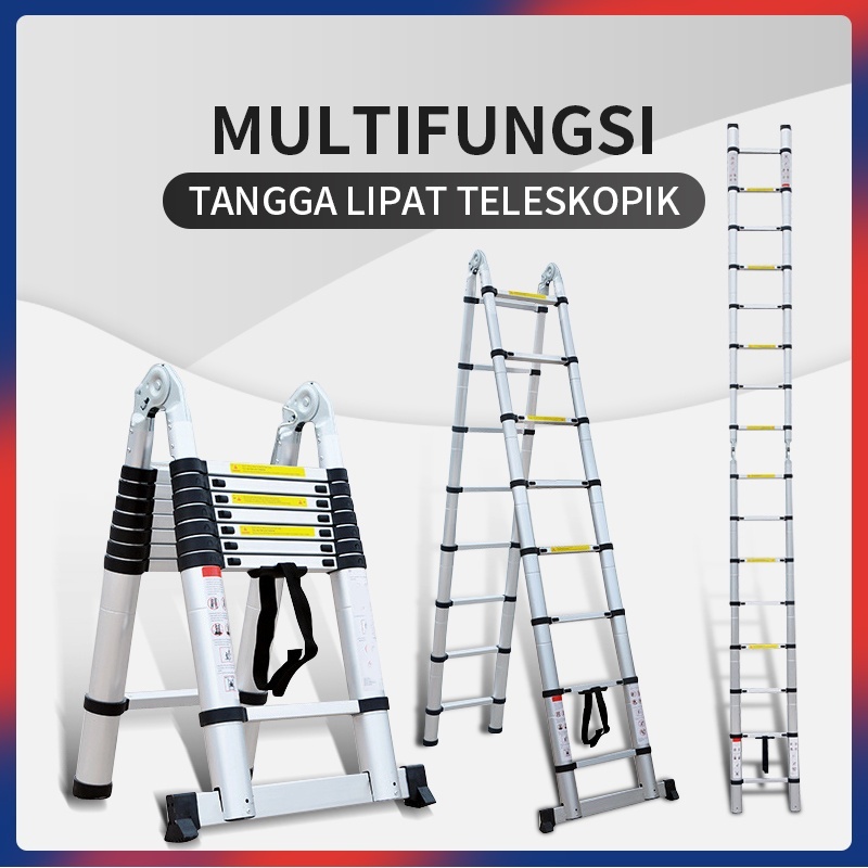 Tangga Teleskopik Portabel Rumah Tangga 3.2Meter Multifungsi Dengan Teknik Tangga Lipat