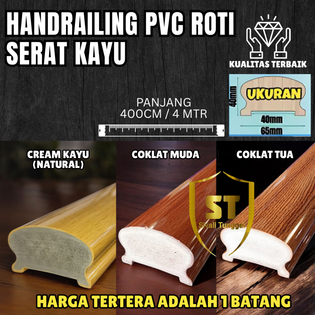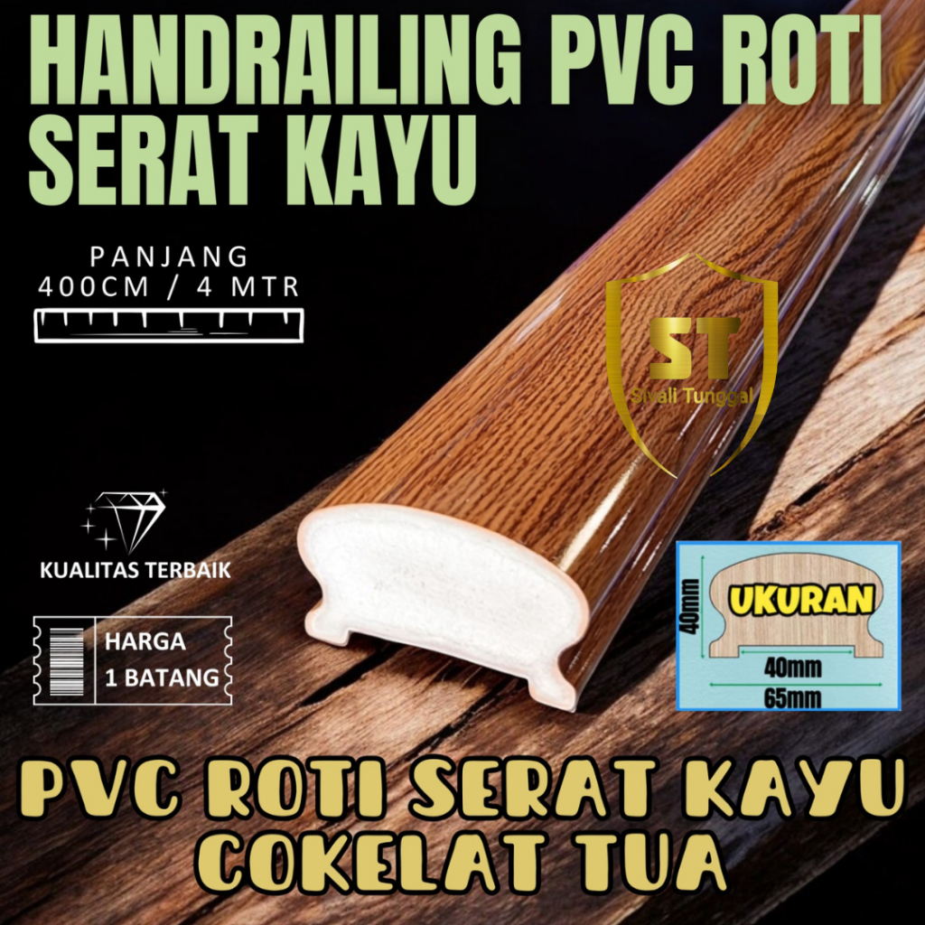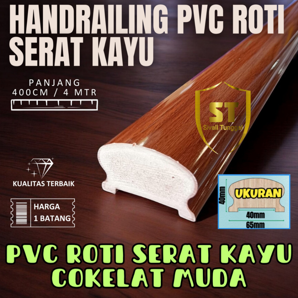 HANDRAILING PEGANGAN TANGGA PVC SERAT KAYU PANJANG 4 METER- PEGANGGAN TANGGA RAILING MODEL ROTI