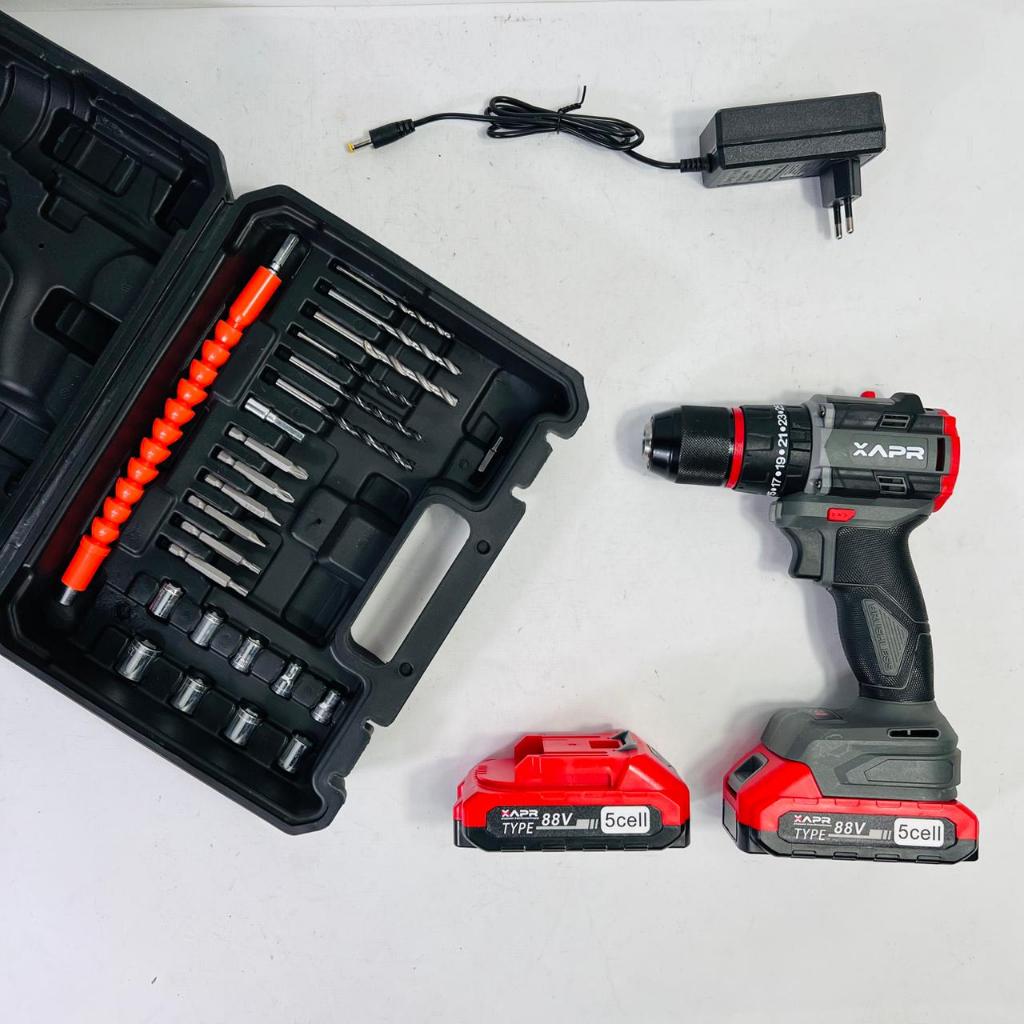 APR BOR impact drill BRUSHLESS TYPE AP34+ 13mm keyless auto lock 2baterai lxt 88v GARANSI 5 TAHUN