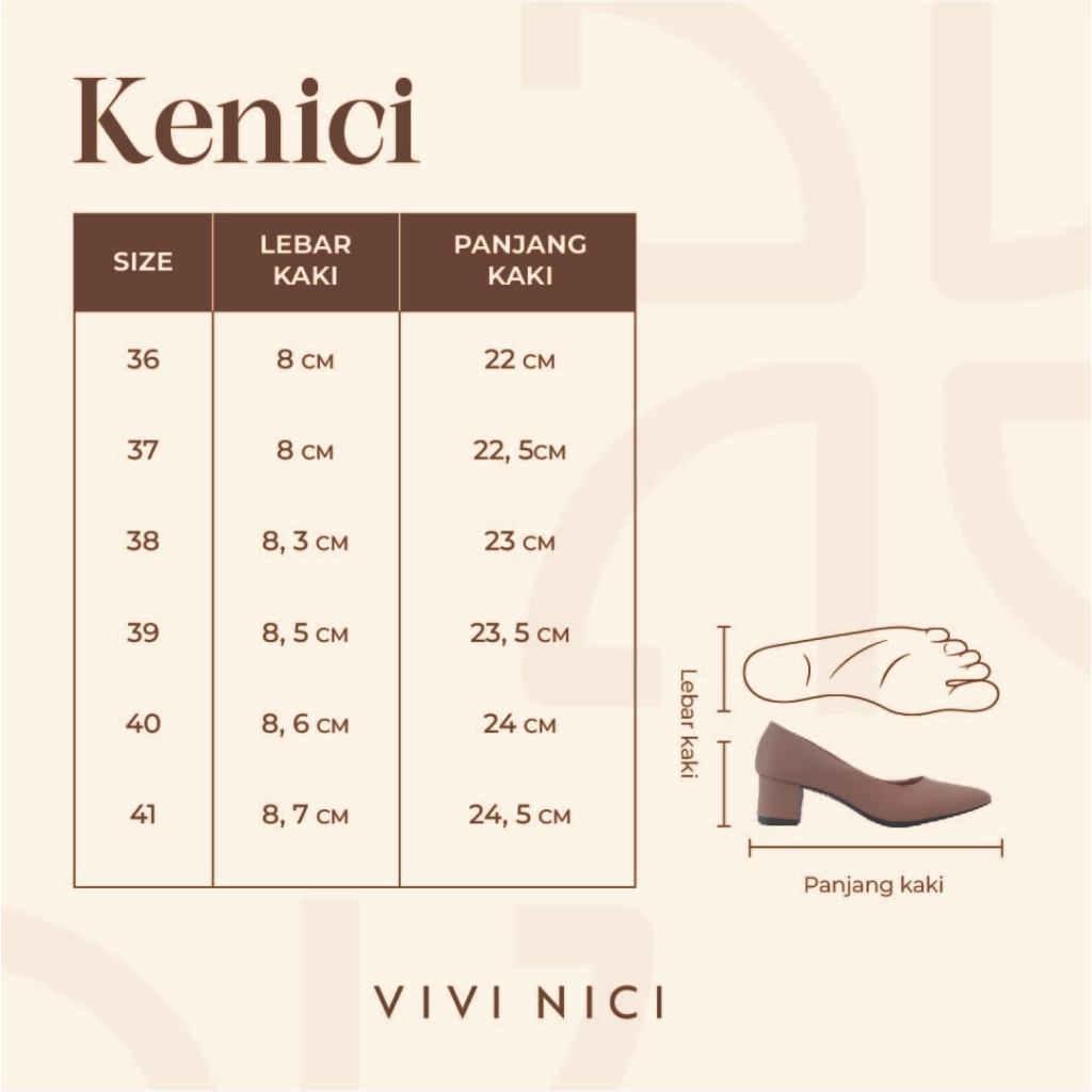 VIVI NICI - Kenici Sepatu Pantofel Wanita Hak 5 Cm