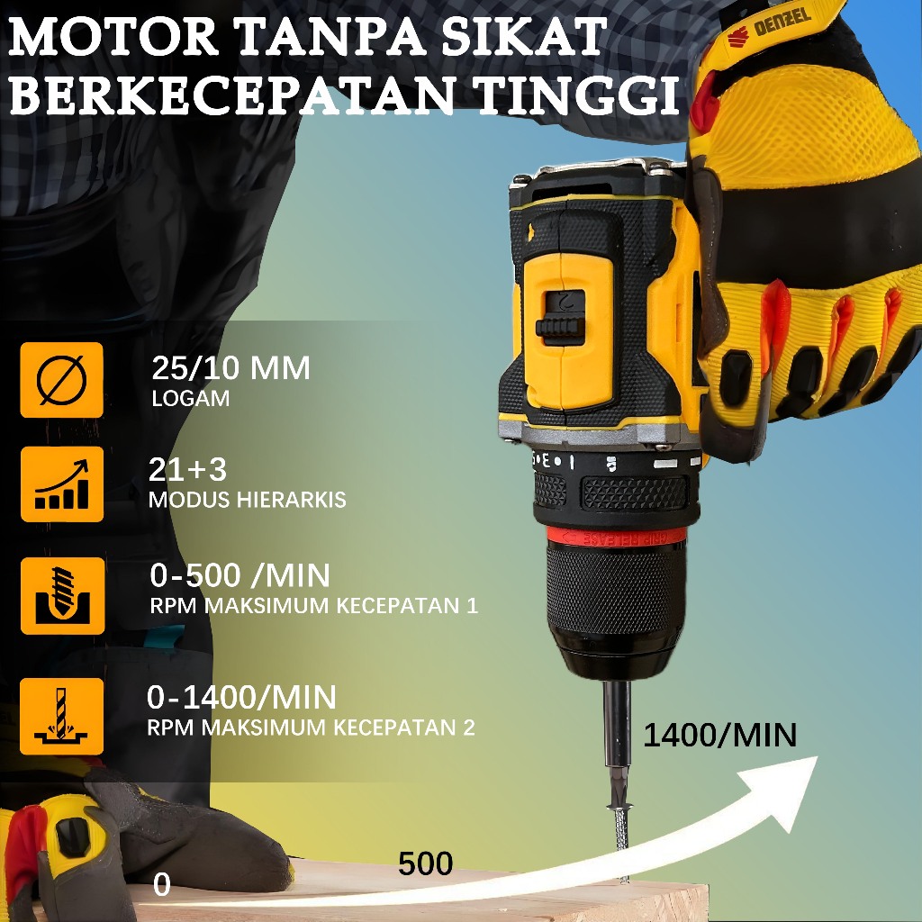 D-WE Teknologi Jerman 1400R/min bor impact bor cordless mesin bor listrik bor baterai mpact cordless Impact drill