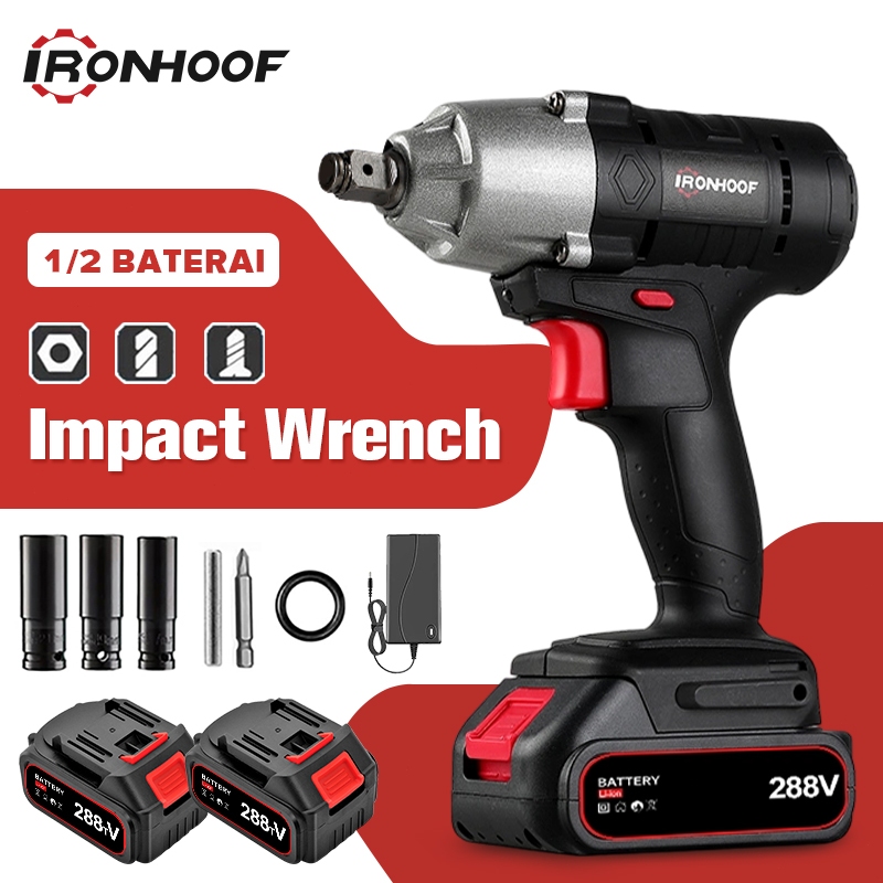 IRONHOOF CORDLESS IMPACT WRENCH IMPACT BATERAI MESIN BOR UNTUK BAUT MOBIL IMPACT
