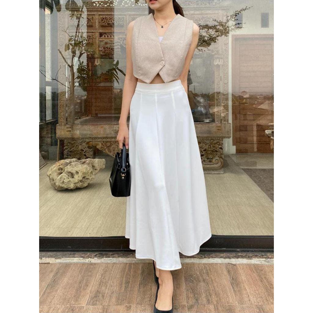 Audy Skirt | Korean Loose Maxi Skirt | Rok Flare Wanita | Rok Basic Polos | Rok Panjang Wanita Scuba Premium