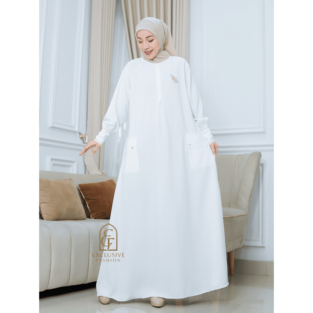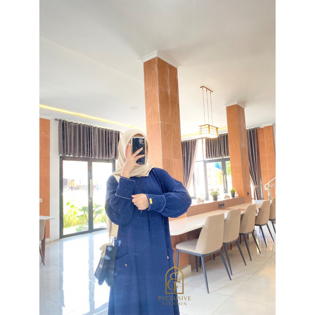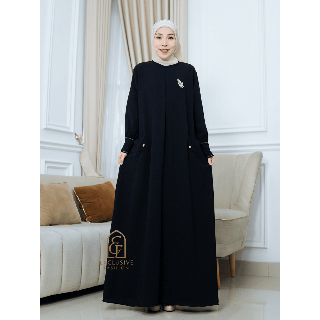 Masayu Dress Abaya Bahan Anti UV Premium Busui Friendly Zipper Tangan Combi Benang Timbul Mewah