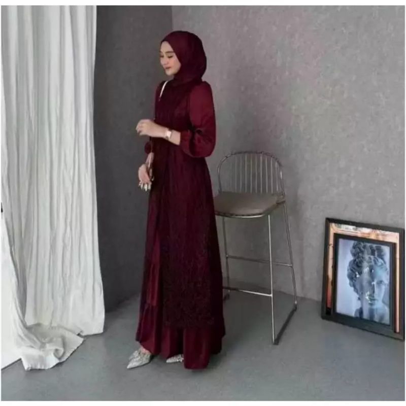 Dress Brokat Kondangan Terbaru Olivia Dress Bahan Valvet Mix Brukat Tille Akar Gamis pesta Mewah