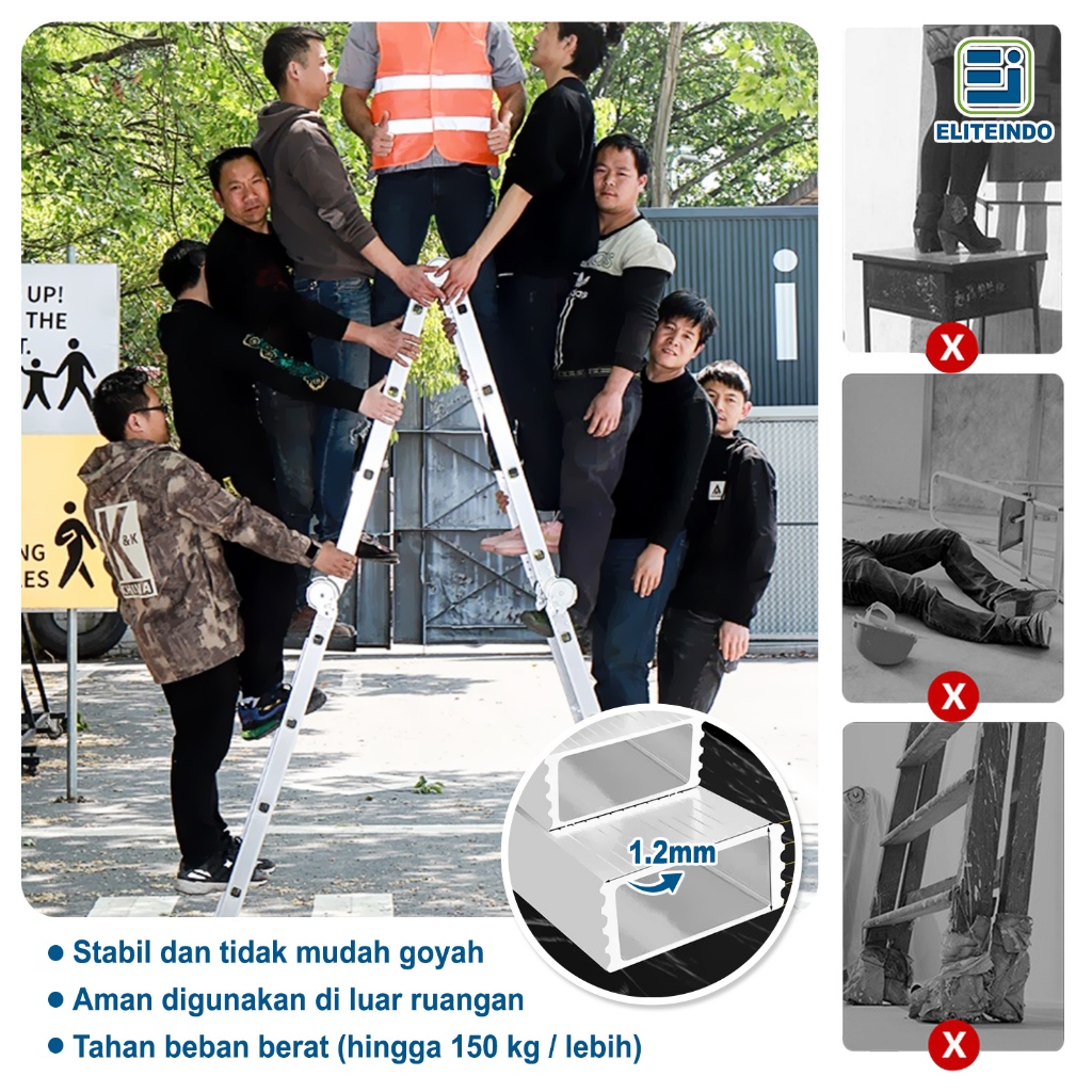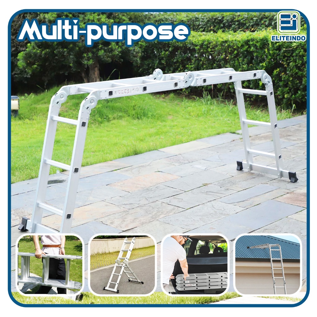 ELITEINDO -Tangga Lipat Multi-purpose Paduan Aluminium 2.8M/4M/5 Meter Ladder Teleskopik Multifungsi