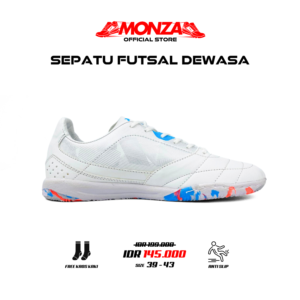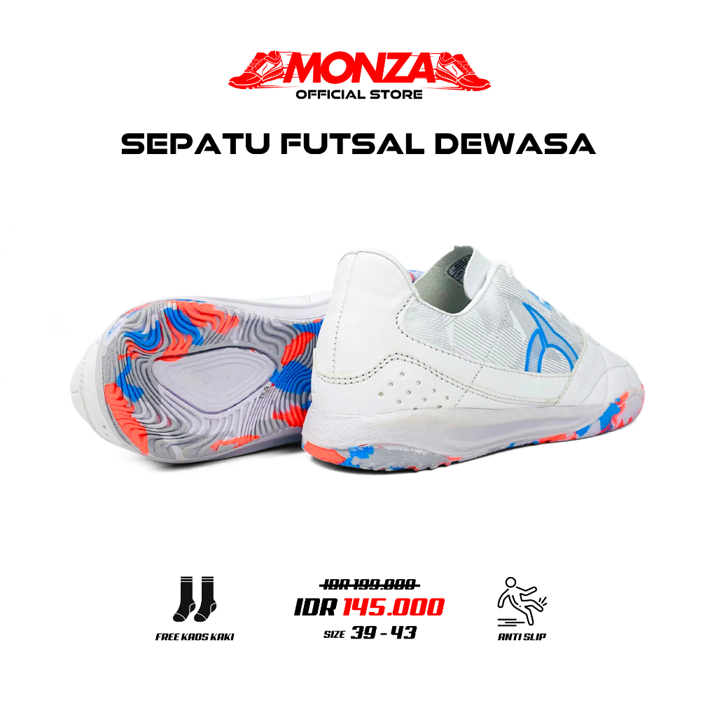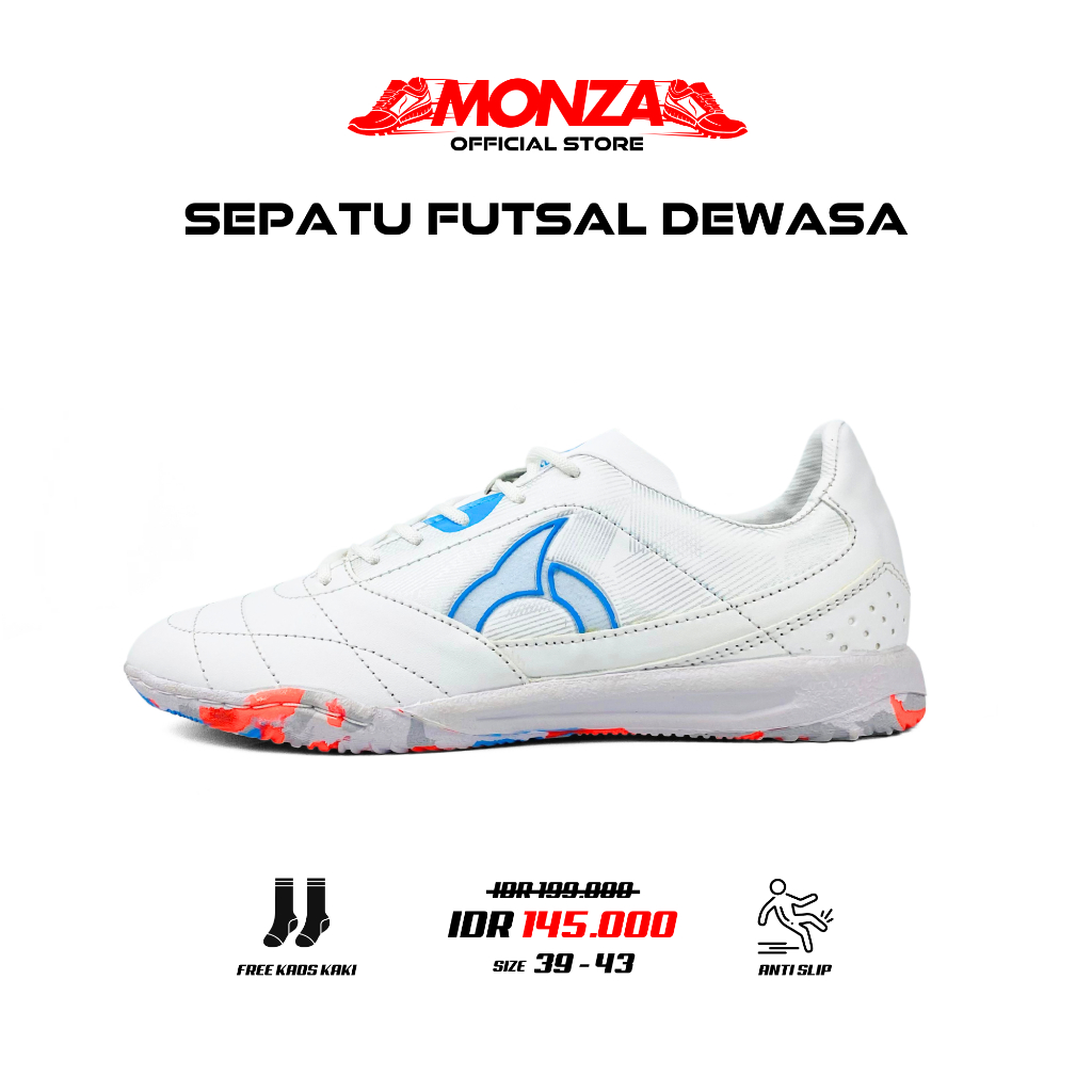 Monza Official - Sepatu Futsal Dewasa Ortuseight Jogo Sala Putih Biru Premium Sepatu Olahraga Dewasa