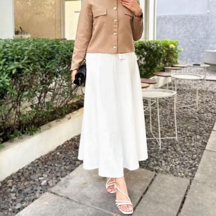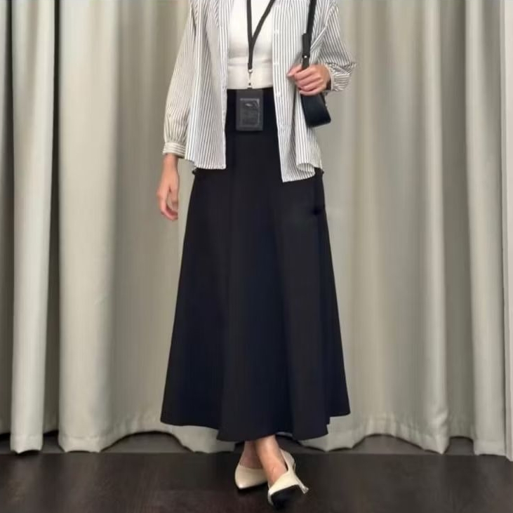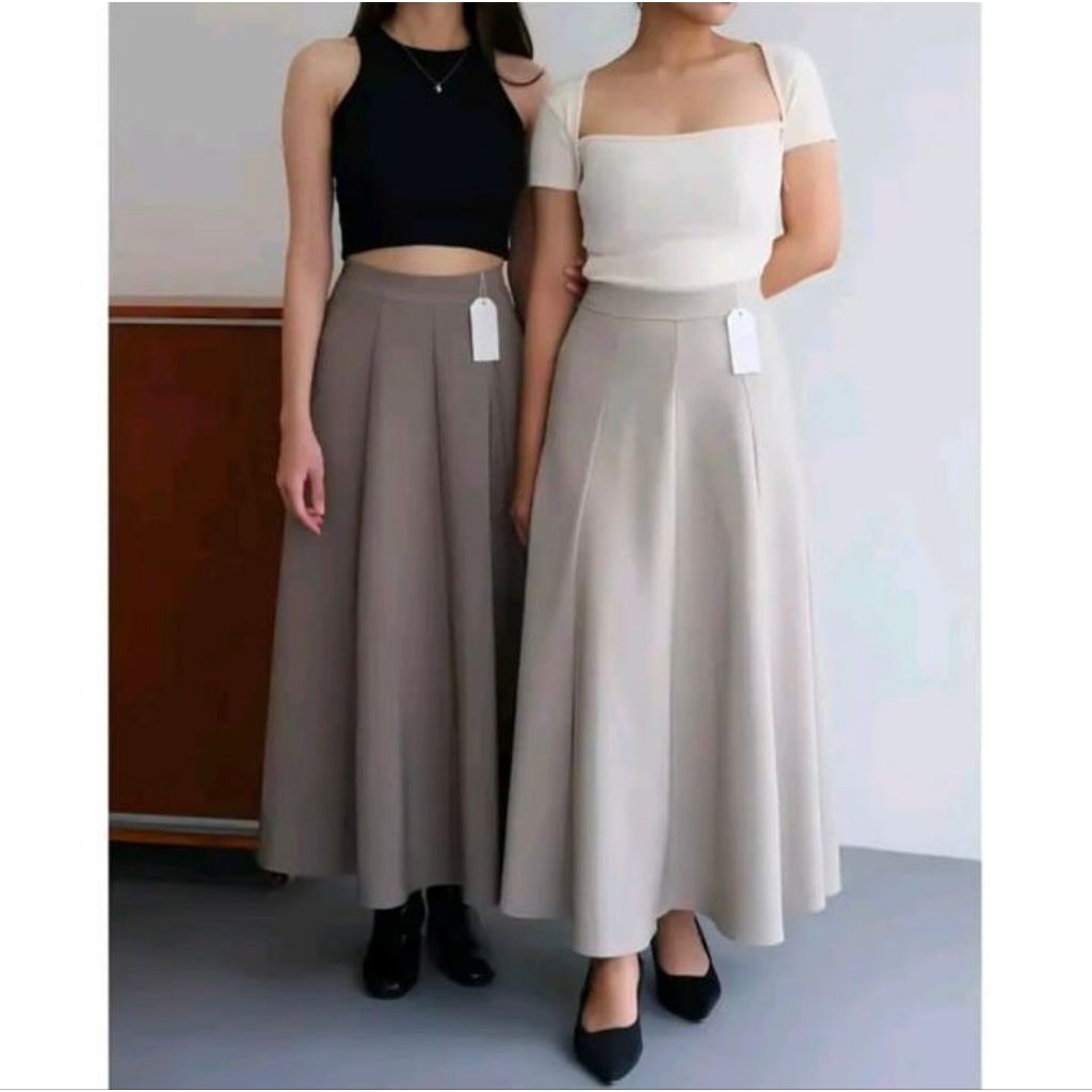 Audy Skirt - Korean Loose Maxi Skirt Rok Wanita Anti Kusut Polyester - Rok Flare Wanita - Rok Basik Polos - Maxi Skirt Rok Mayung Panjang Wanita
