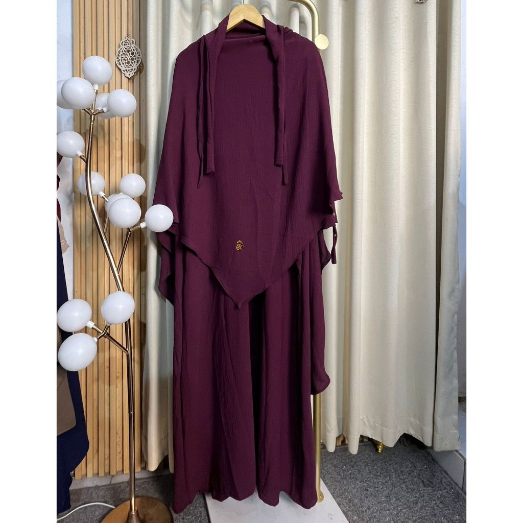 gamis abaya haviza set french khimar abaya muslimah umroh haji terbaru crinkle mewah variasi kancing