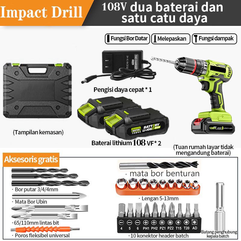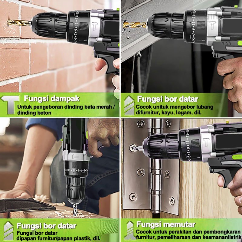Garansi 20 tahun 999VF Mesin Bor Baterai Bor Impact listrik Bor Cordless Murah Bor cas / 3 Mode-Bor Impact Obeng/Bor Tem