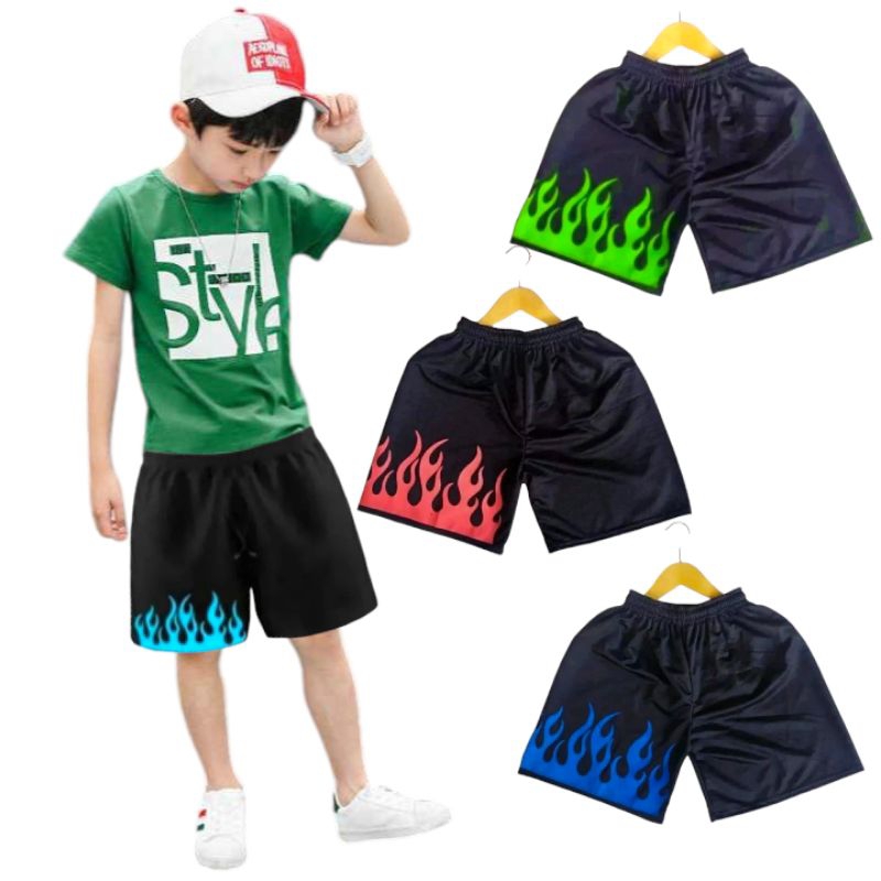 Top Murah Paket Hemat 3 Pcs Celana Pendek Anak Motif Api Pria Wanita Usia 7-14 Tahun