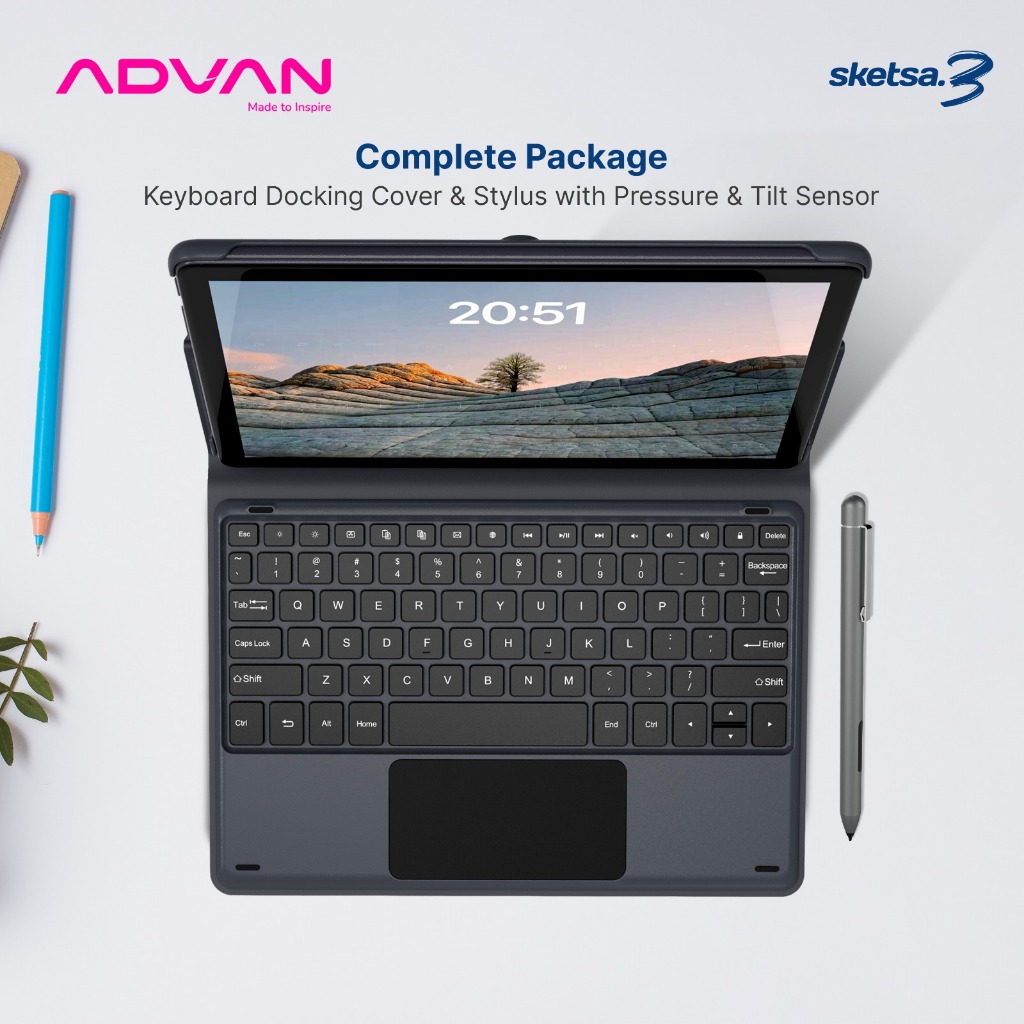[FREE KEYBOARD + PEN] ADVAN Tab Sketsa 3 | Dual Sim Card 4G LTE | Layar 10.1” HD IPS | 128GB+RAM 6GB | Tiger T606 | Android 13 | Garansi Resmi 1 Tahun