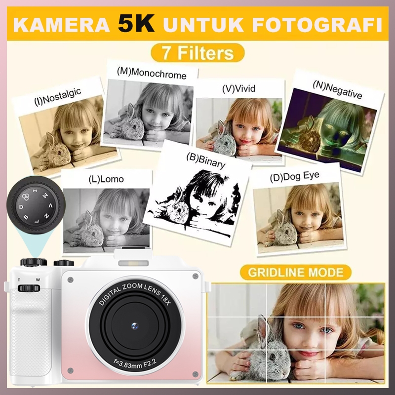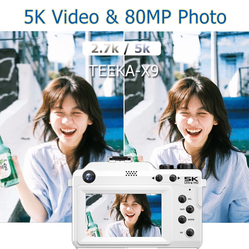 TEEKA X9 80MP Wifi Digital Camera 5K Video 18X Digital Zoom Dengan Dukungan Selfie Koneksi WIFI untuk Hadiah Pemula Teeke Kamera Digital 18X 80MP Dengan Kartu 64GB