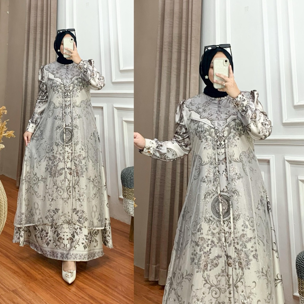 SAVIRA DRESS GAMIS KONDANGAN LEBARAN 2026 MEWAH ARMANI SILK TILE SNOW