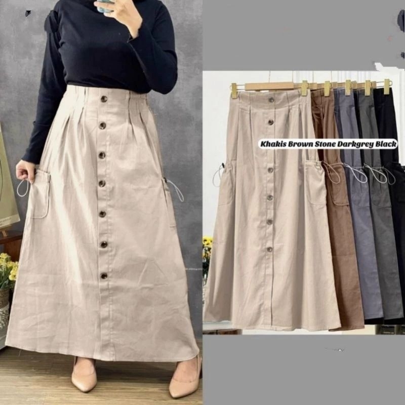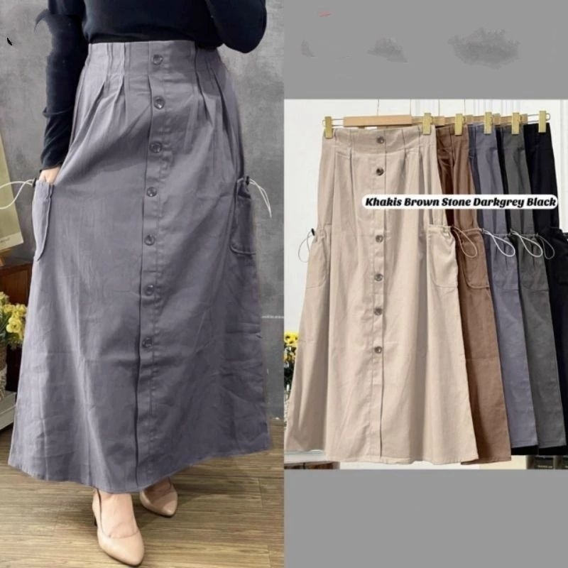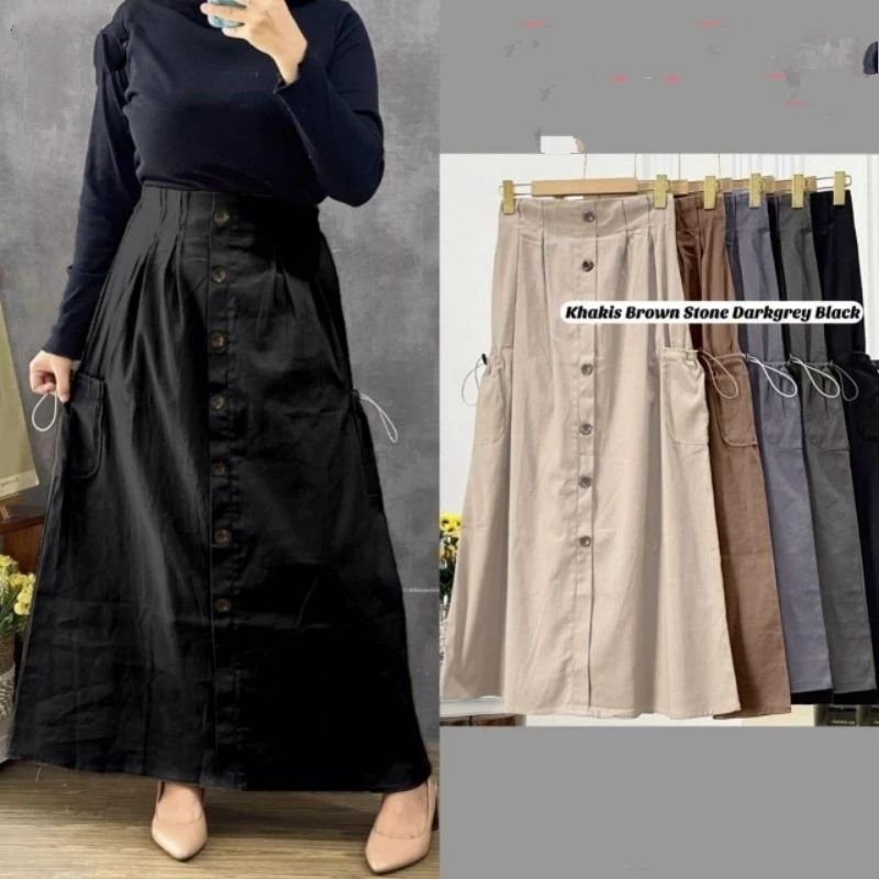 Viny Rok Cargo Wanita Variasi Kancing Depan Full