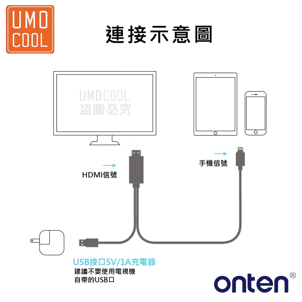 ONTEN OTN-7575S - Lightning to HDMI Cable - 2000mm Length