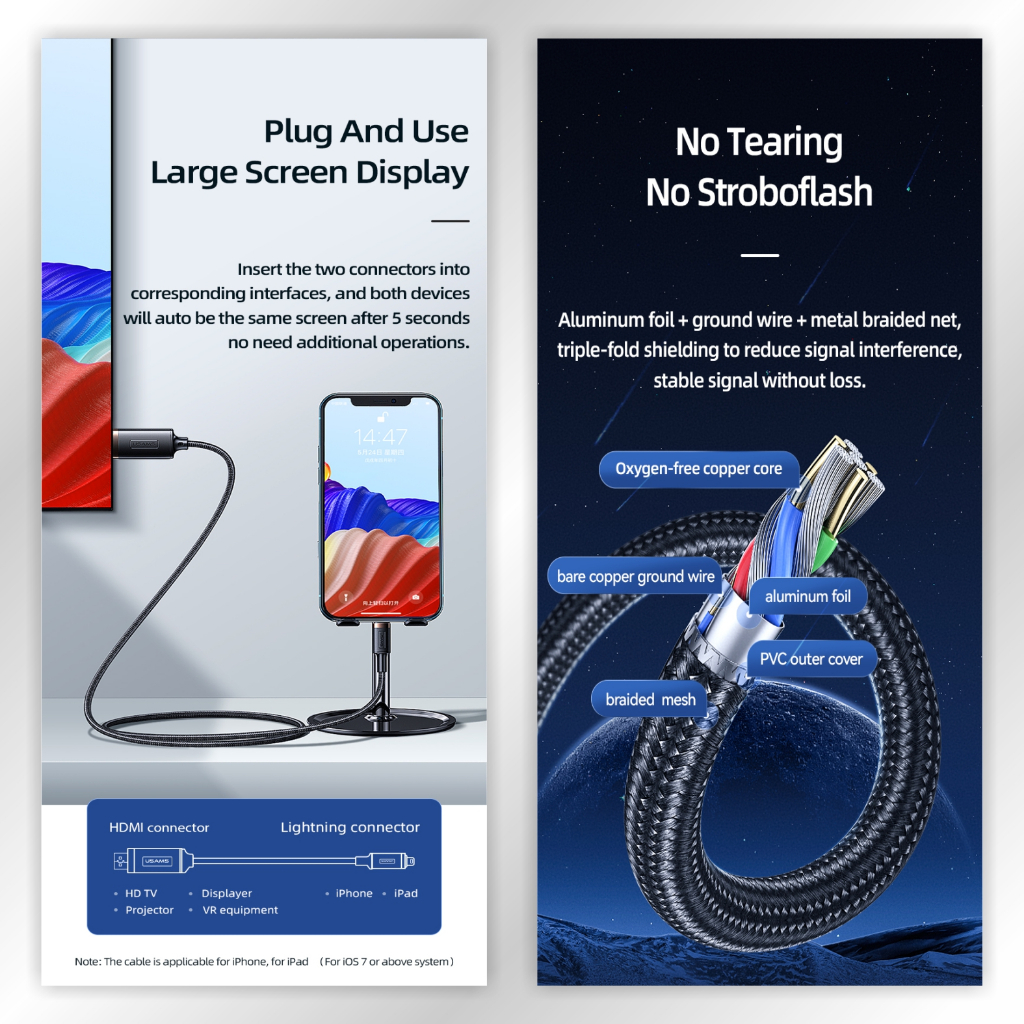 USAMS U70 Kabel Lightning to HDMI HD Video Cable 2m